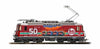 Model with true to the original livery and lettering and in-plane applied windows. Furnished driver's cab. Flexible roof-mounted pantographs. Motor with flywheel. Plug-in interface according to NEM 651 standards for the adapation of a decoder. Drive on 8 wheels. Two wheels have traction tyres. Power draw on all axles.
